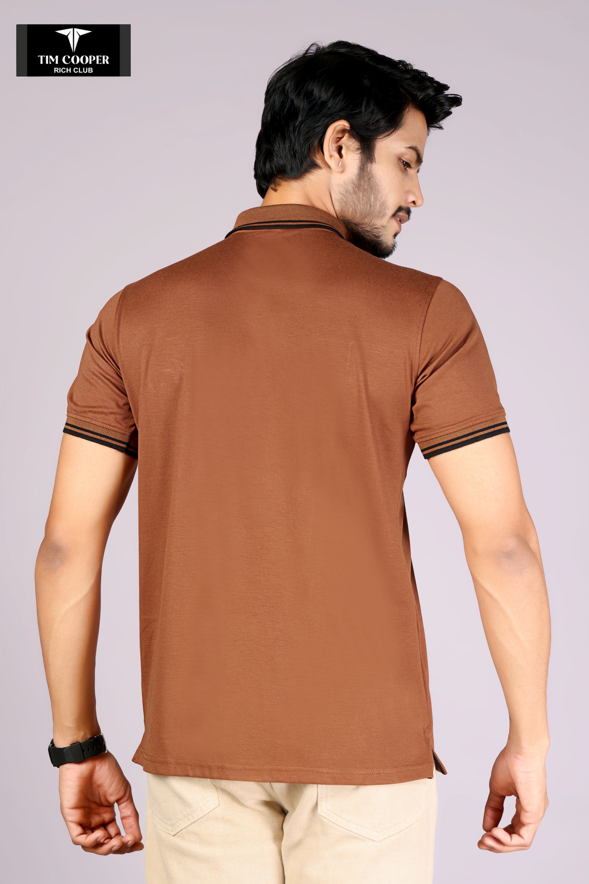 Add a touch of cool elegance to your wardrobe with the Tim Cooper Rich Club Brown Polo T-Shirt. This refreshing piece features a soft brown shade, complemented by sleek black tipping on the collar and sleeve cuffs for a stylish contrast. Designed with a classic polo collar and short sleeves, the t-shirt offers a relaxed yet polished silhouette, making it perfect for both casual and semi-formal settings. The premium cotton fabric ensures breathability and comfort throughout the day.
