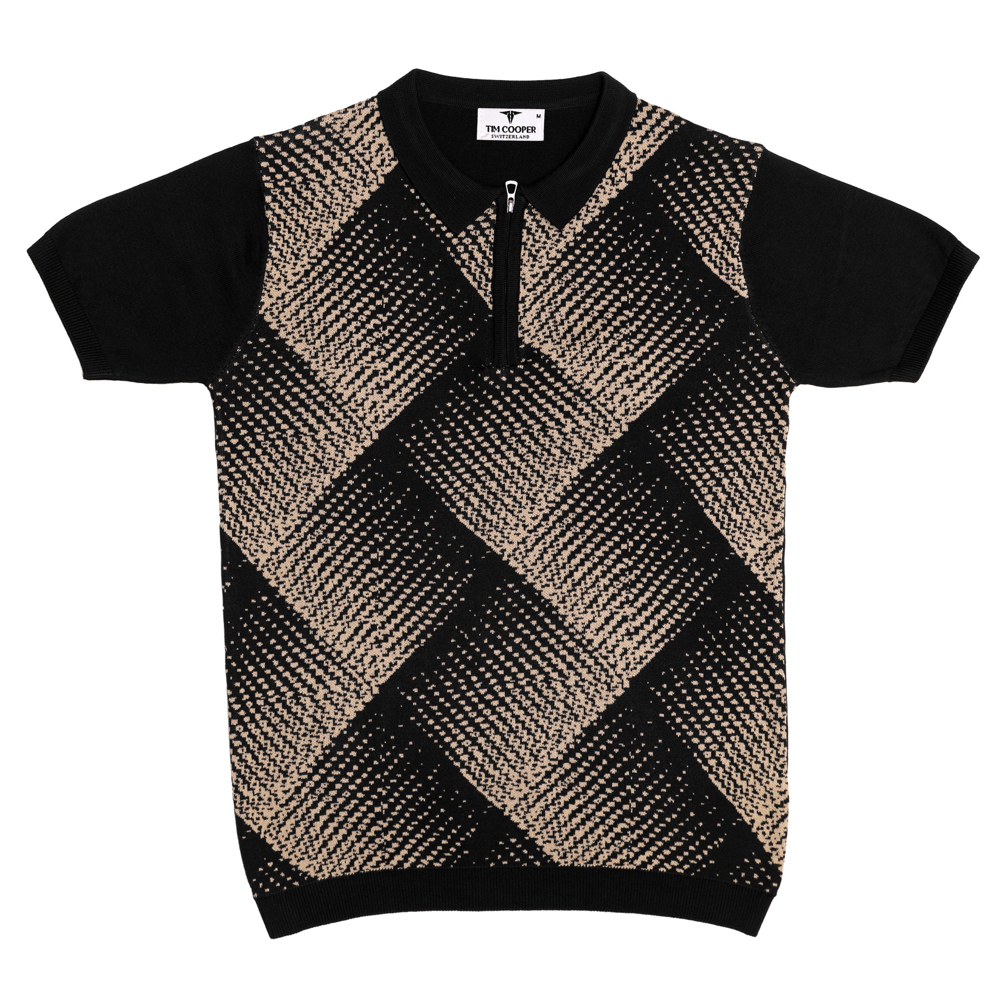 Tim Cooper Switzerland Men’s Black Textured Knit Sweat with Beige Geometric Pattern