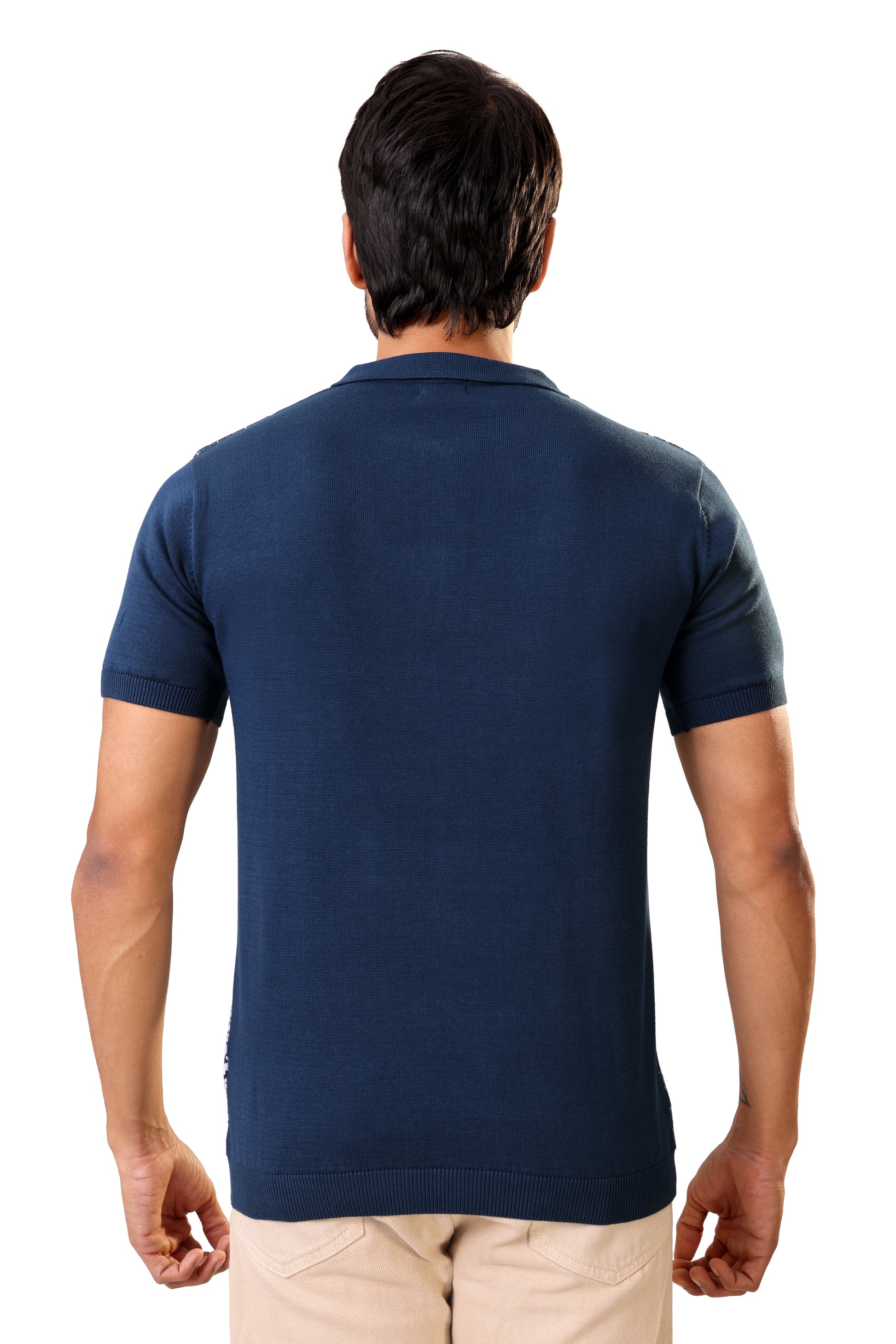 The knit fabric gives the shirt a refined, slightly elevated look, making it suitable for casual outings as well as smart-casual settings.