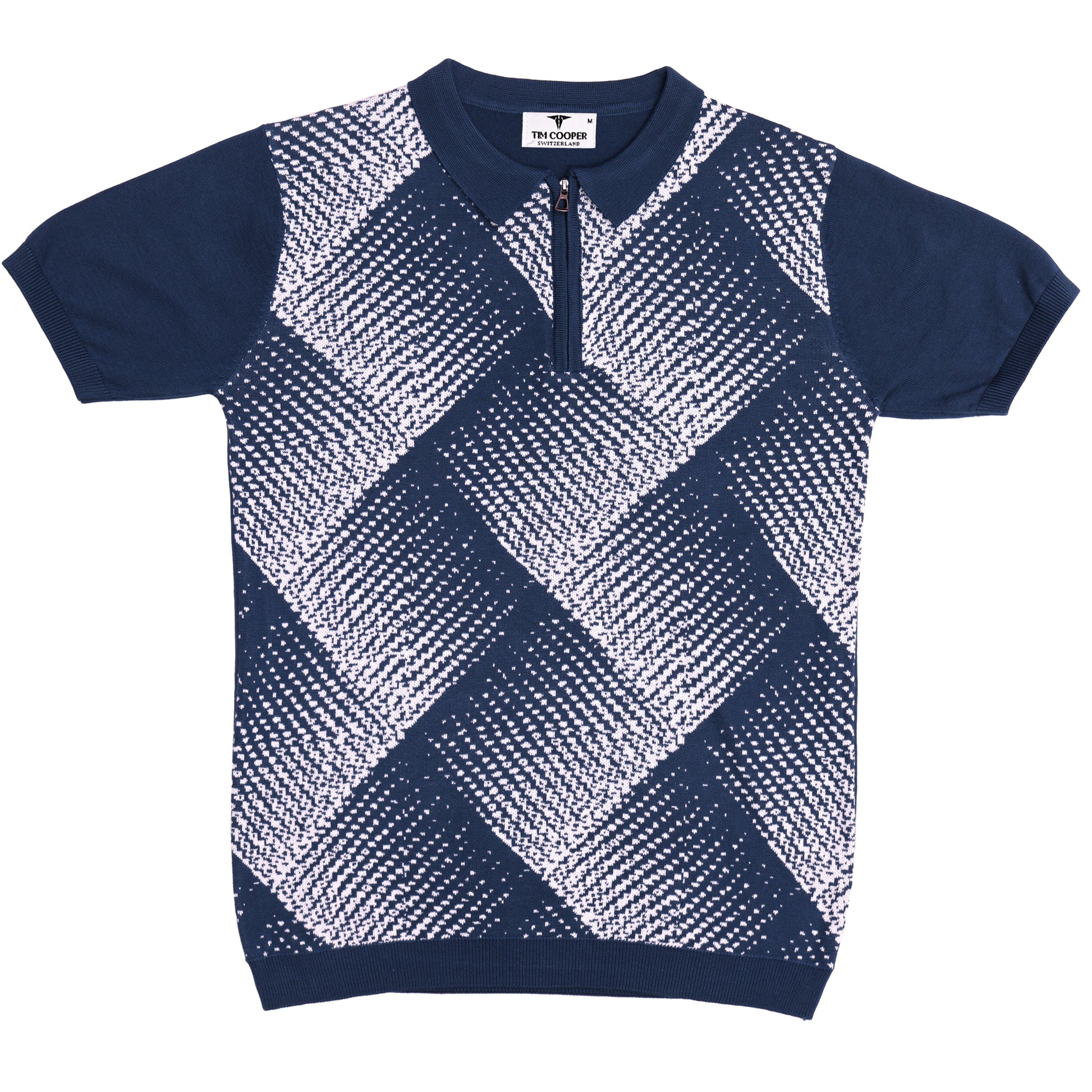 Tim Cooper Switzerland Navy Blue Geometric Pattern Men’s Knit Sweat T-Shirt