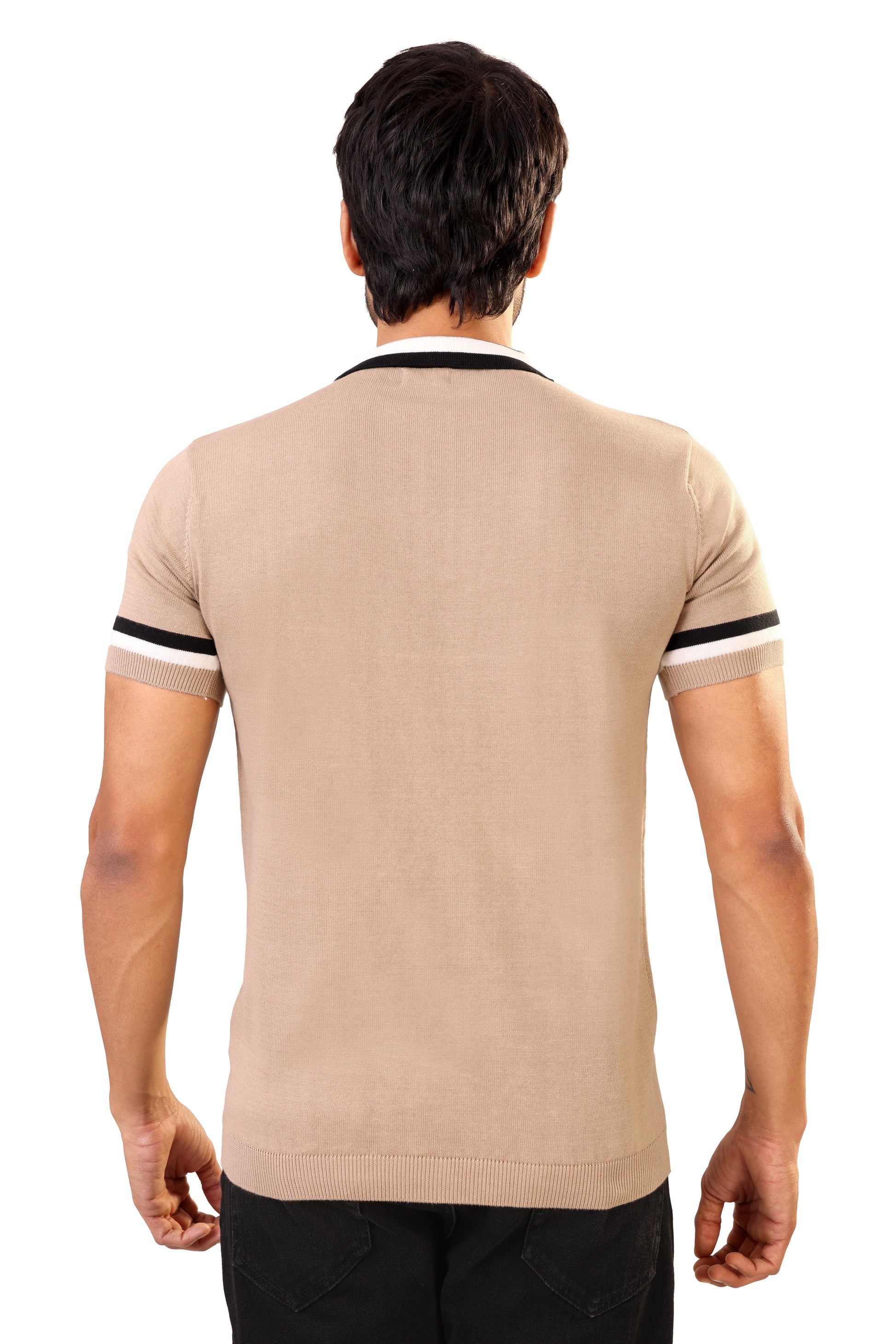 Tim Cooper Switzerland Men’s Beige Sweat T-Shirt with Black & White Contrast Details