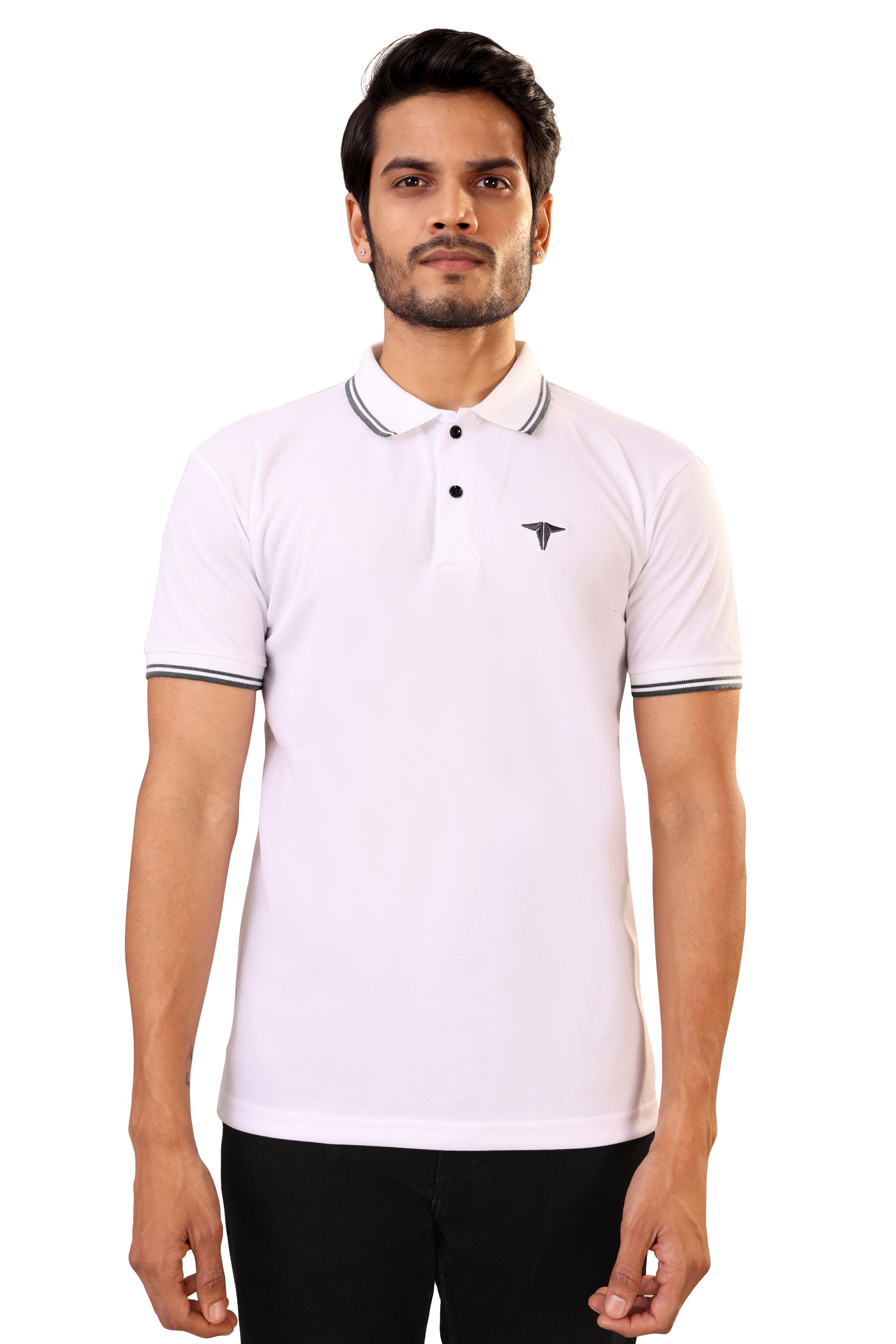 Tim Cooper Switzerland Men’s Classic White Polo T-Shirt with Contrast Trim