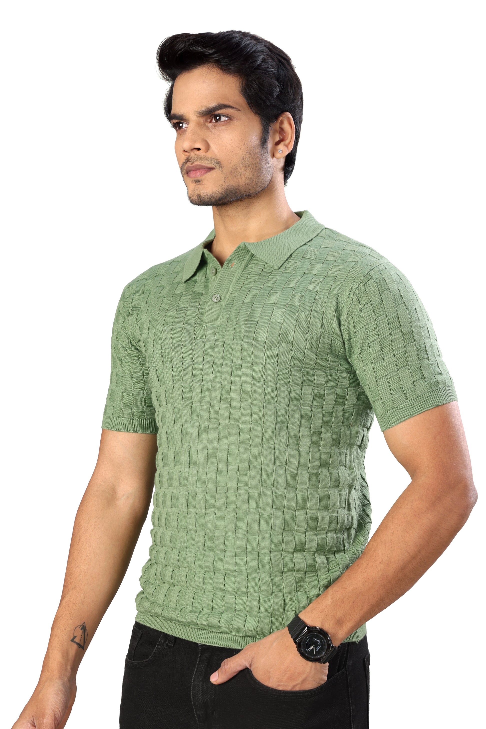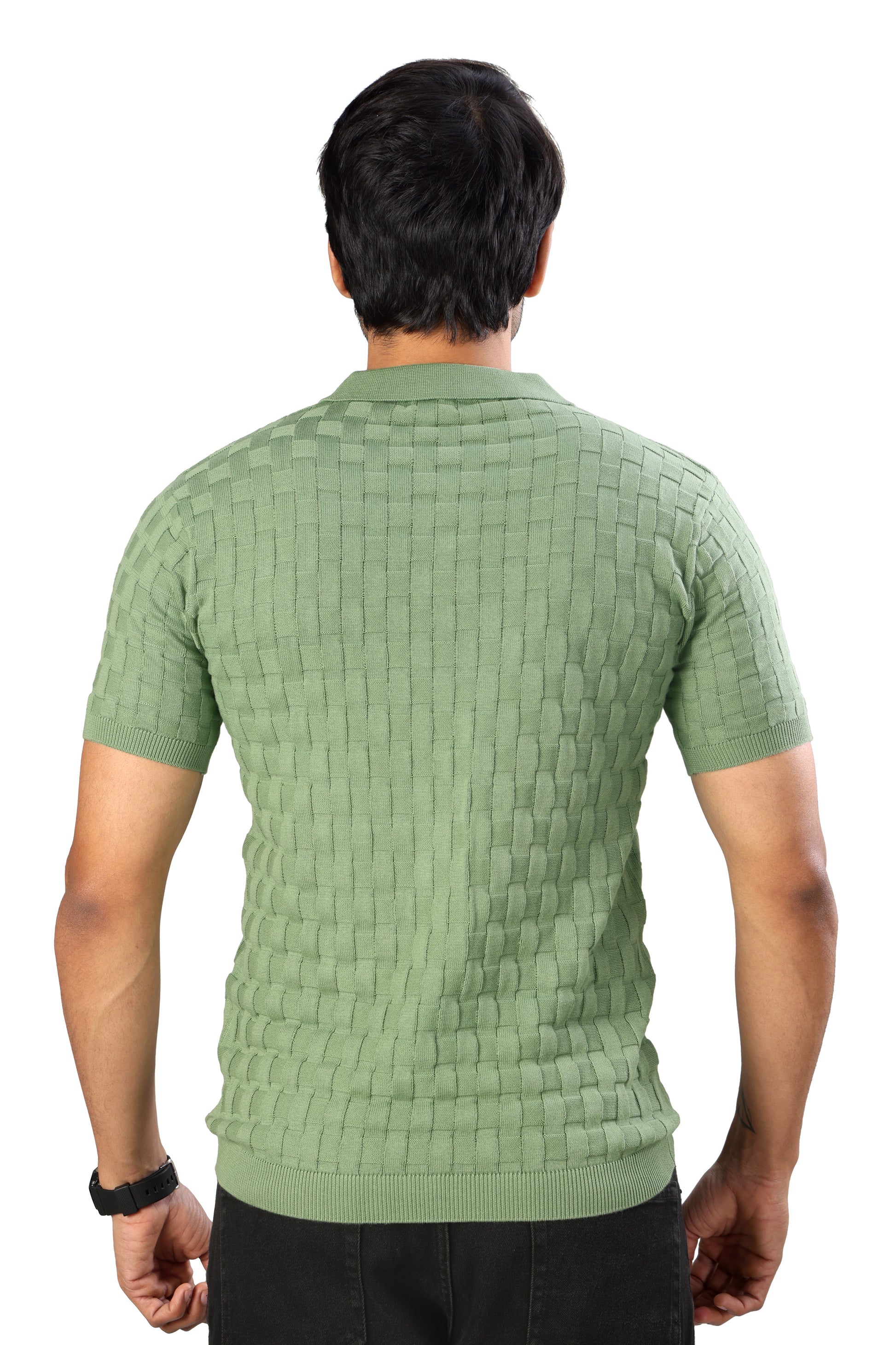 Tim Cooper Switzerland Men’s Textured Knit Polo T-Shirt for Men in Sage Green