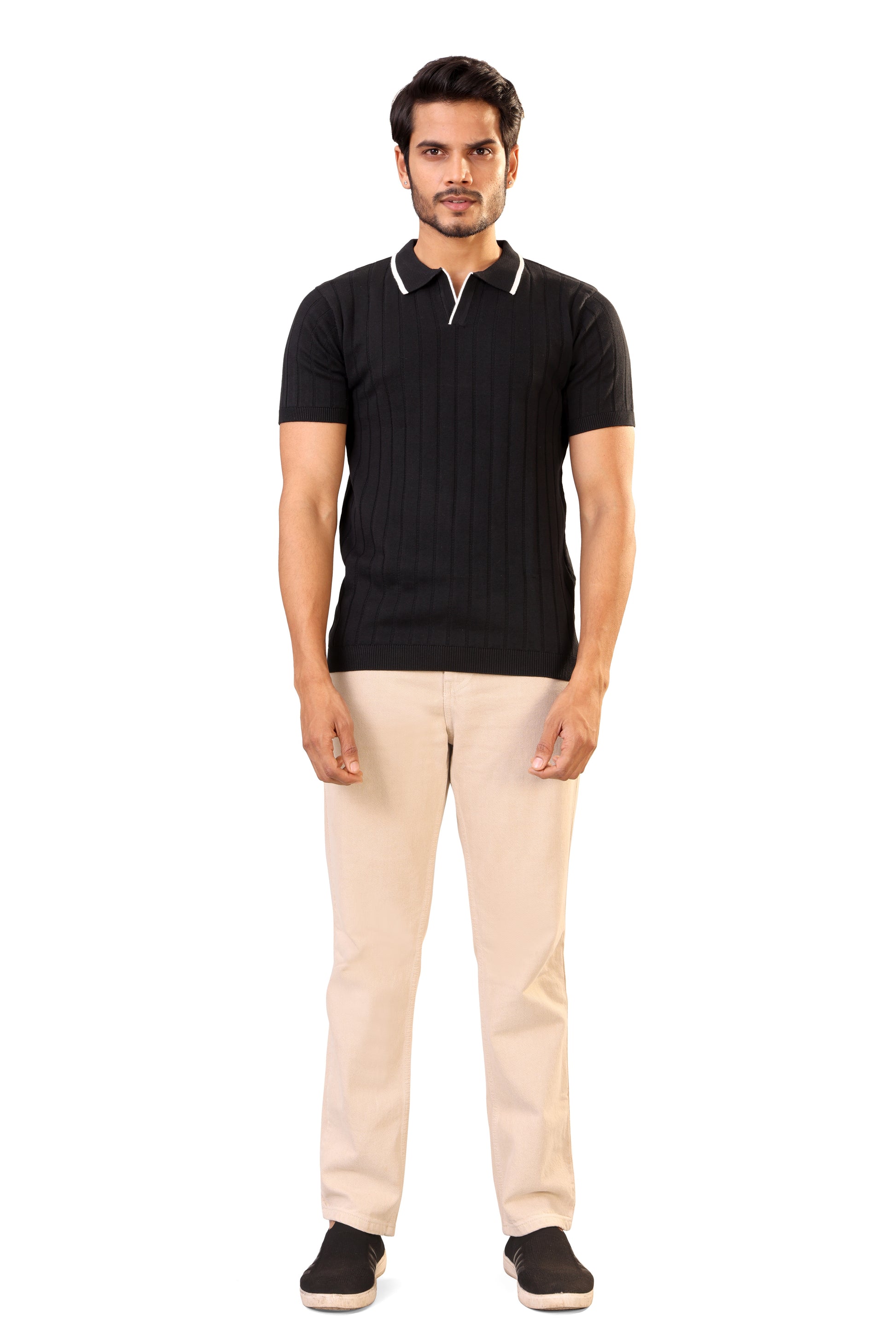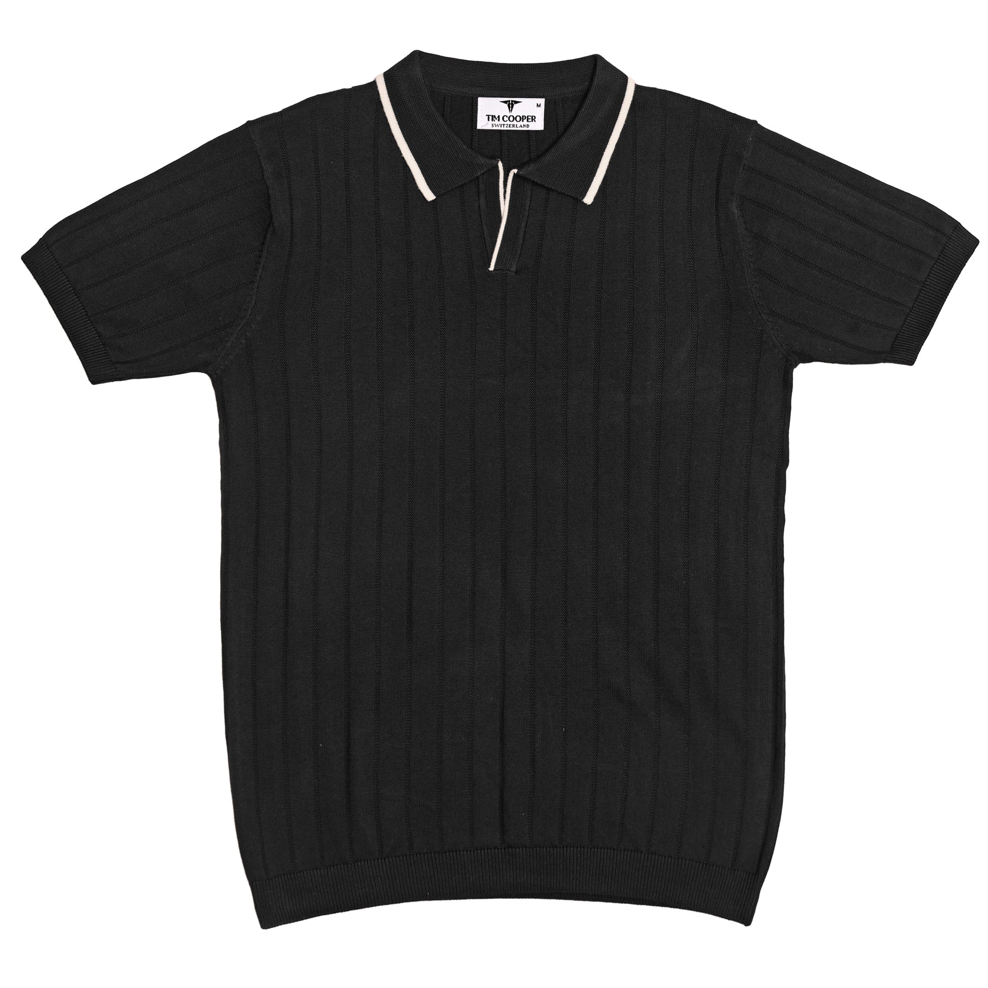 Tim Cooper Switzerland Men’s Black Short-Sleeve Sweat T-Shirt with Contrast Collar