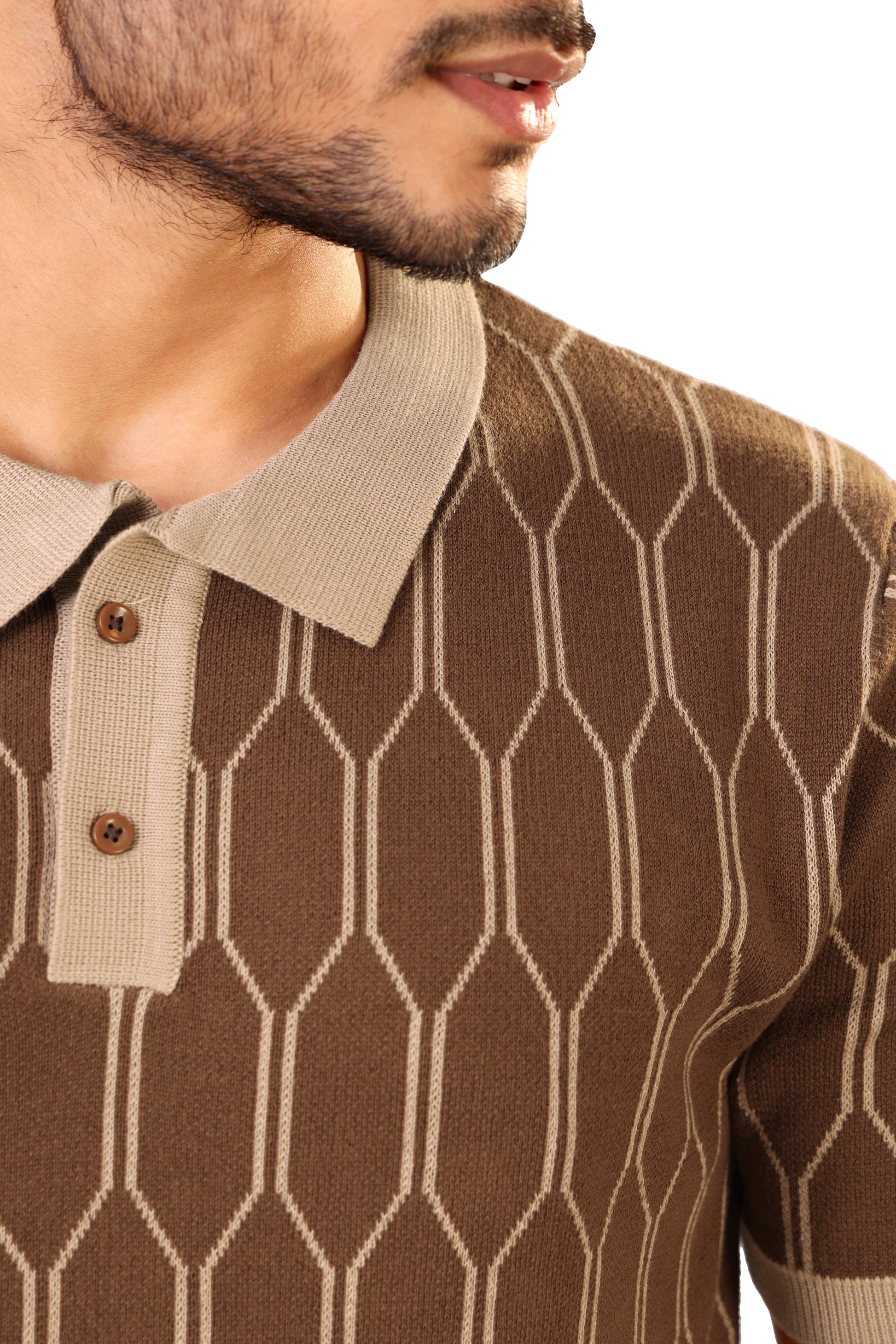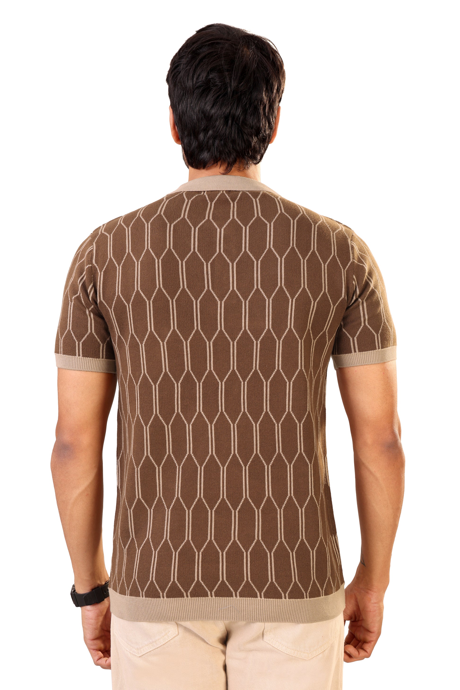 Tim Cooper Switzerland Men’s Brown Geometric Knit Sweat T-Shirt