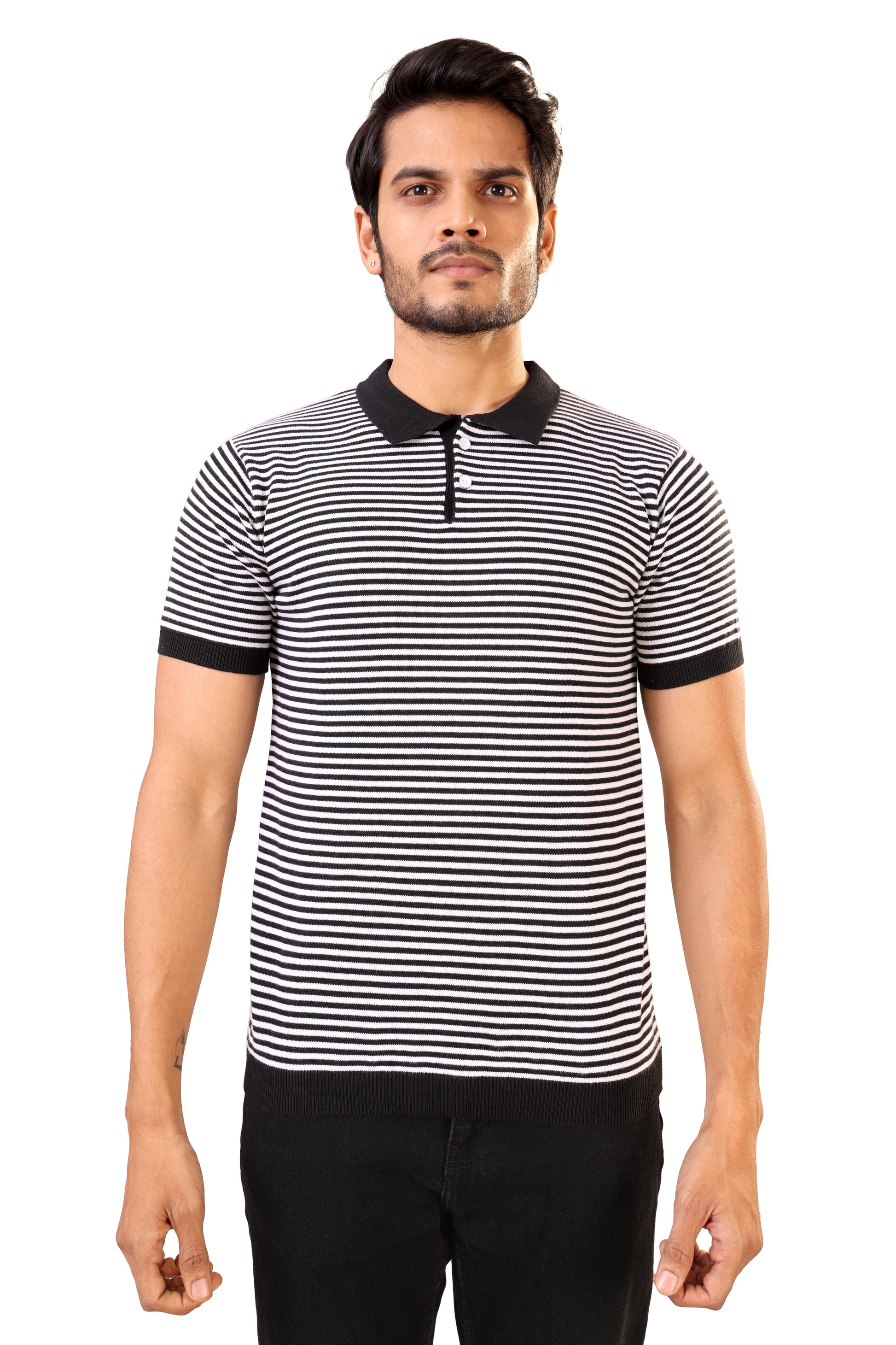 Tim Cooper Switzerland Men’s Black & White Striped Knit Sweat T-Shirt