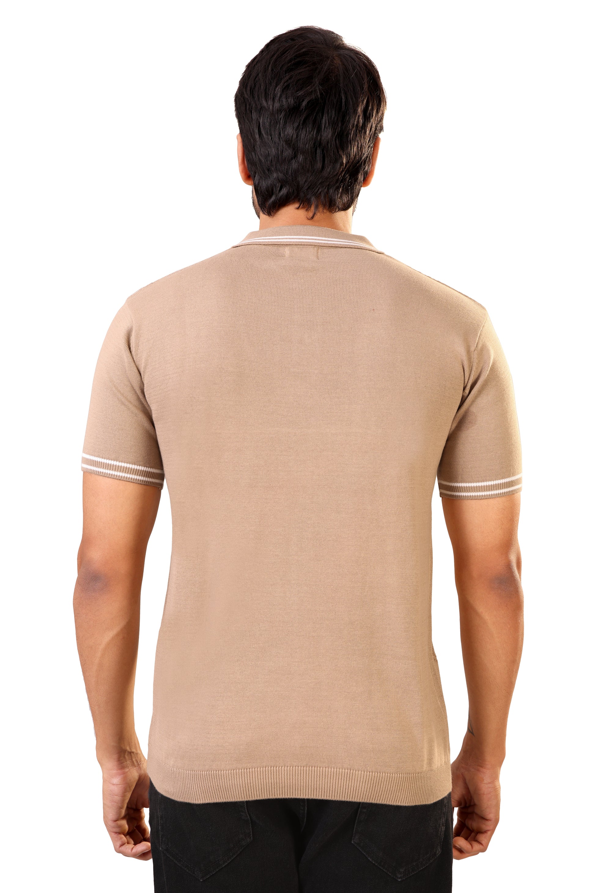 Collar: Ribbed polo collar with white tipping